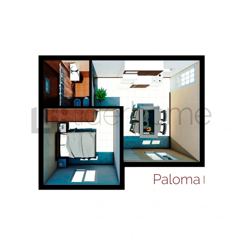 Minimalismo y funcionalidad en su máxima expresión. Este modelo, inspirado en la serenidad de La Paloma, es perfecto para una vida práctica y sin complicaciones, ideal para solteros o parejas que inician su camino.